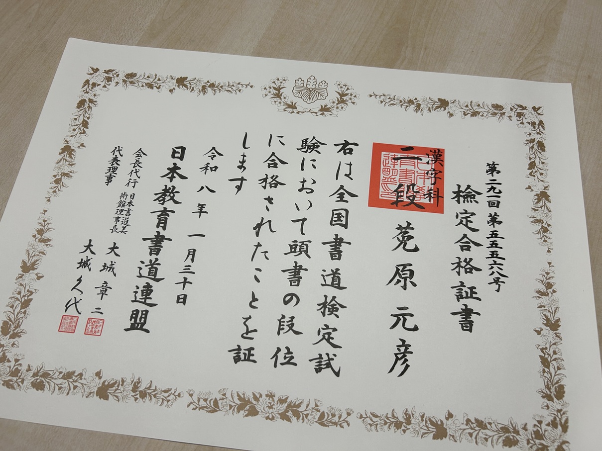 子供と一緒に通っている書道教室、まだ続いています。現在、二段です。
